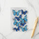 Vertical composition of realistic, blue and white morpho butterflies on grey textured background. Morpho blue butterfly.