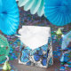 Vertical composition of realistic, blue and white morpho butterflies on grey textured background. Morpho blue butterfly.