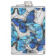Vertical composition of realistic, blue and white morpho butterflies on grey textured background. Morpho blue butterfly.