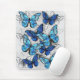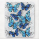 Vertical composition of realistic, blue and white morpho butterflies on grey textured background. Morpho blue butterfly.