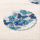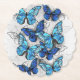Vertical composition of realistic, blue and white morpho butterflies on grey textured background. Morpho blue butterfly.