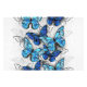 Vertical composition of realistic, blue and white morpho butterflies on grey textured background. Morpho blue butterfly.