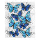 Vertical composition of realistic, blue and white morpho butterflies on grey textured background. Morpho blue butterfly.