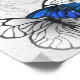 Vertical composition of realistic, blue and white morpho butterflies on grey textured background. Morpho blue butterfly.