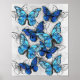 Vertical composition of realistic, blue and white morpho butterflies on grey textured background. Morpho blue butterfly.
