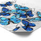 Vertical composition of realistic, blue and white morpho butterflies on grey textured background. Morpho blue butterfly.