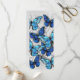 Vertical composition of realistic, blue and white morpho butterflies on grey textured background. Morpho blue butterfly.
