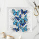 Vertical composition of realistic, blue and white morpho butterflies on gray textured background. Morpho blue butterfly.