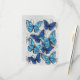 Vertical composition of realistic, blue and white morpho butterflies on grey textured background. Morpho blue butterfly.