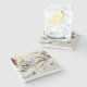 The coasters are gorgeous, a quality feel and heavy weight. They look like a precious archeological find. A rustic stone juxtaposed with a modern floral black and white print. I like the way the print goes slightly imperfect on the cut stone edges giving them a kind-of natural beauty.