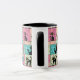 Mid Century Modern Colour Scheme. Five black cats enjoying grid time in a Mondrianesque design.