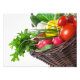 Composition with raw vegetables, green leaves and wicker basket isolated on white background. Copy space.