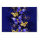 Composition of luxurious sapphire and gold jewellery butterflies on blue textured background.