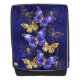 Composition of luxurious sapphire and gold jewellery butterflies on blue textured background.