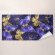 Composition of luxurious sapphire and gold jewellery butterflies on blue textured background.