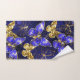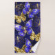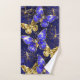 Composition of luxurious sapphire and gold jewellery butterflies on blue textured background.