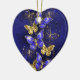 Composition of luxurious sapphire and gold jewellery butterflies on blue textured background.