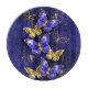 Composition of luxurious sapphire and gold jewellery butterflies on blue textured background.