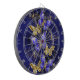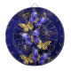 Composition of luxurious sapphire and gold jewellery butterflies on blue textured background.