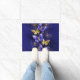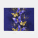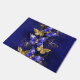 Composition of luxurious sapphire and gold jewellery butterflies on blue textured background.