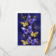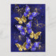 Composition of luxurious sapphire and gold jewellery butterflies on blue textured background.