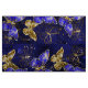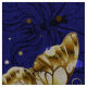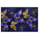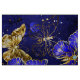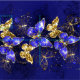 Composition of luxurious sapphire and gold jewellery butterflies on blue textured background.