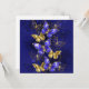 Composition of luxurious sapphire and gold jewellery butterflies on blue textured background.