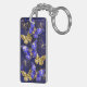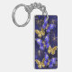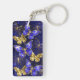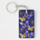 Composition of luxurious sapphire and gold jewellery butterflies on blue textured background.