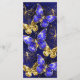 Composition of luxurious sapphire and gold jewellery butterflies on blue textured background.