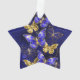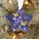 Composition of luxurious sapphire and gold jewellery butterflies on blue textured background.