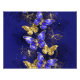 Composition of luxurious sapphire and gold jewellery butterflies on blue textured background.