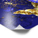 Composition of luxurious sapphire and gold jewellery butterflies on blue textured background.