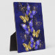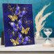 Composition of luxurious sapphire and gold jewellery butterflies on blue textured background.