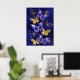 Composition of luxurious sapphire and gold jewellery butterflies on blue textured background.
