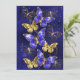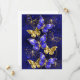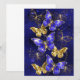 Composition of luxurious sapphire and gold jewellery butterflies on blue textured background.