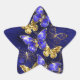 Composition of luxurious sapphire and gold jewellery butterflies on blue textured background.