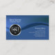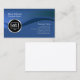 This simple elegant and professional computer repair business card features a blue background. A blue hued wave streams from the left to the right, splitting the card into two sections. A circular chrome computer gears icon sits on this wave, on the left side of the card, while your name and title appear on the upper left and your business name and contact details appear on the bottom right. Designed for businesses or professions related to computer, information technology, technical, engineering, network, laptop, it, computer repair, computer services themes.