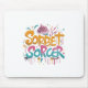 The "Sorbet Sorcerer" T-shirt design features a whimsical sorcerer character, playfully conjuring a swirl of colourful, icy sorbet. The sorcerer wears a tall, pointed hat adorned with fruit and candy, and their flowing robes are decorated with pastel hues that mimic the look of frozen treats. In one hand, they hold a magical staff with a glowing scoop of sorbet at the tip, while in the other, they sprinkle a cascade of sprinkles and tiny fruits into the air. The background features soft, dreamy clouds that give the design a light and playful feel, perfect for capturing the magic of summer desserts.