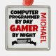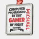 This ornament featuring the quote "Computer Programmer by Day Gamer by Night" is perfect for any programmer that loves playing video games.
