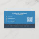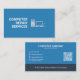 A blue business card for a computer repair services company or freelance activities such as computer technician, hardware and software support, network administrator, maintenance, computer consultant. It is simple and comes with an illustration including a computer, a laptop and a mobile phone. On the back, there is a QR Code, full contact information decorated with icons and a list of services!