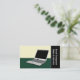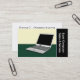Illustration of a laptop computer on a desk. This modern and professional business card has a space on the right for your company name in vertical text. Excellent business card for computer technicians, sales and repair companies.