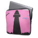 This computer sleeve is designed with a silhouetted lighthouse against a pink sunset sky.