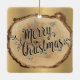 con fondo dorado y una rodaja de madera que lleva feliz navidad .