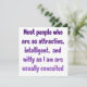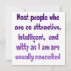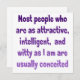 It's not ironic if it is true! Let people know you don't have an ego problem. Reads "Most people who are as attractive, witty and intelligent as I am are usually conceited."