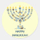 Dozens of concentric circles form together to make a lit Hanukkah menorah. Add your message underneath. Use as envelope seals, on presents or give as favours. You can also change the background if you like. Available in matching products.
