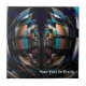 This box is graced my a purple and blue fractal image of a five-pointed star in a surrounding swirl of colour; all on a dark background. Add your own text.