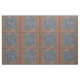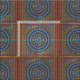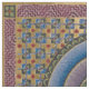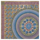 Abstract geometric design featuring detail from mediaeval Armenian illuminated manuscript in gold, red, purple and blue