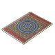 Abstract geometric design featuring detail from mediaeval Armenian illuminated manuscript in gold, red, purple and blue