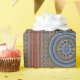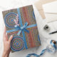 Abstract geometric design featuring detail from mediaeval Armenian illuminated manuscript in gold, red, purple and blue
