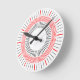 A clock face with a concentric circles design, in which rays are arranged to mark the minutes and hours in the outer circle, and used for decorative effect in the inner circles, the first inner ring having a tighter angular distribution of lines. However the second inner ring has the usual minute spaces. All the rays line up correctly and the hours are marked with a bolder red line in the outer circle providing both a decorative and practical clock face.